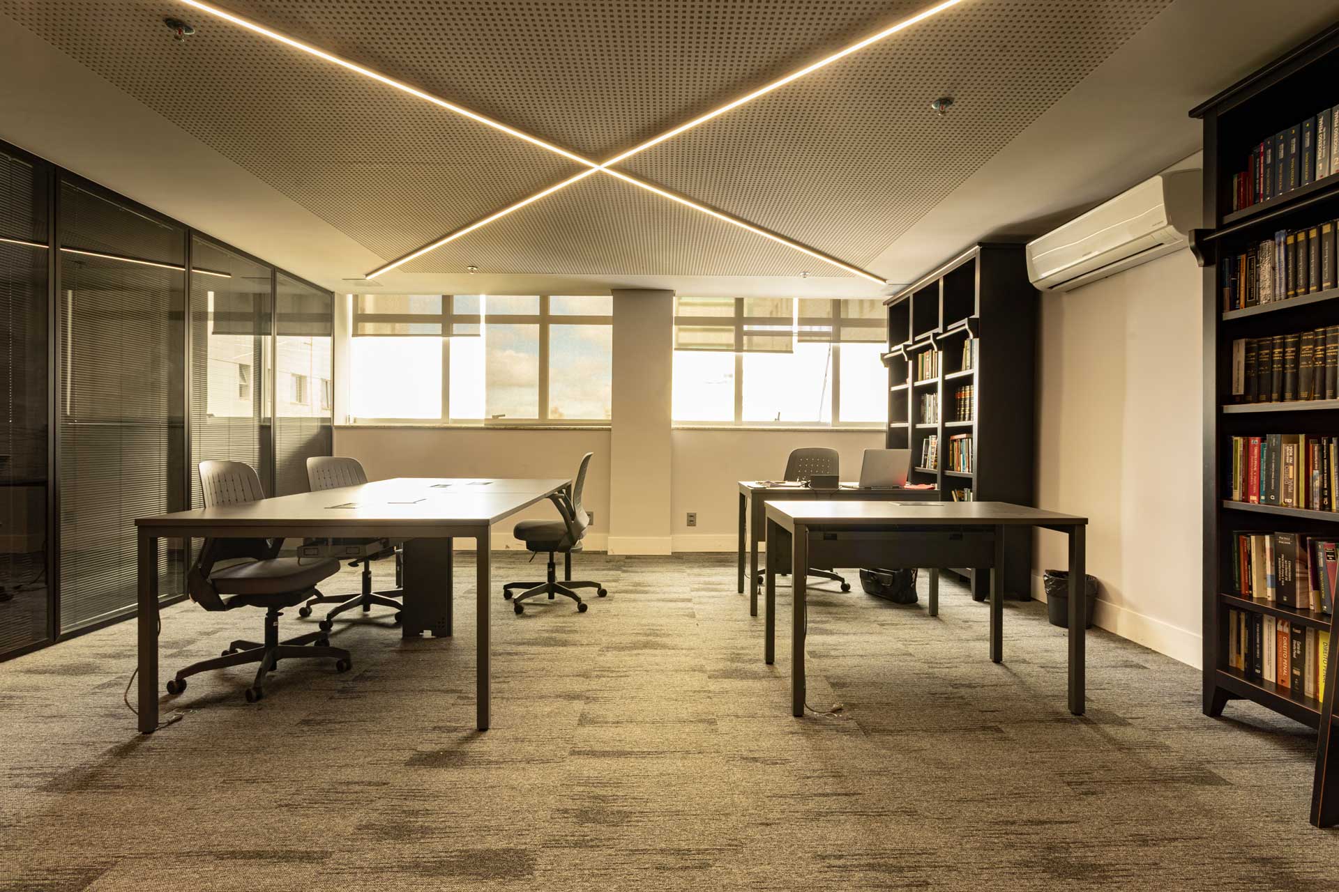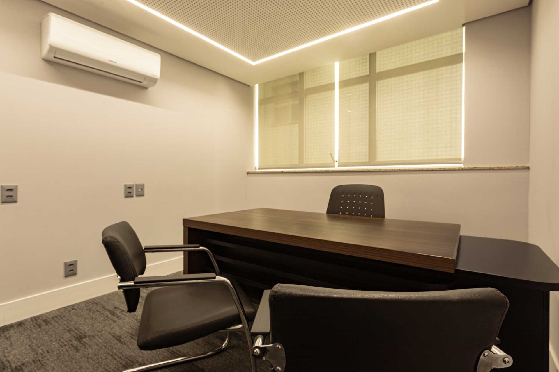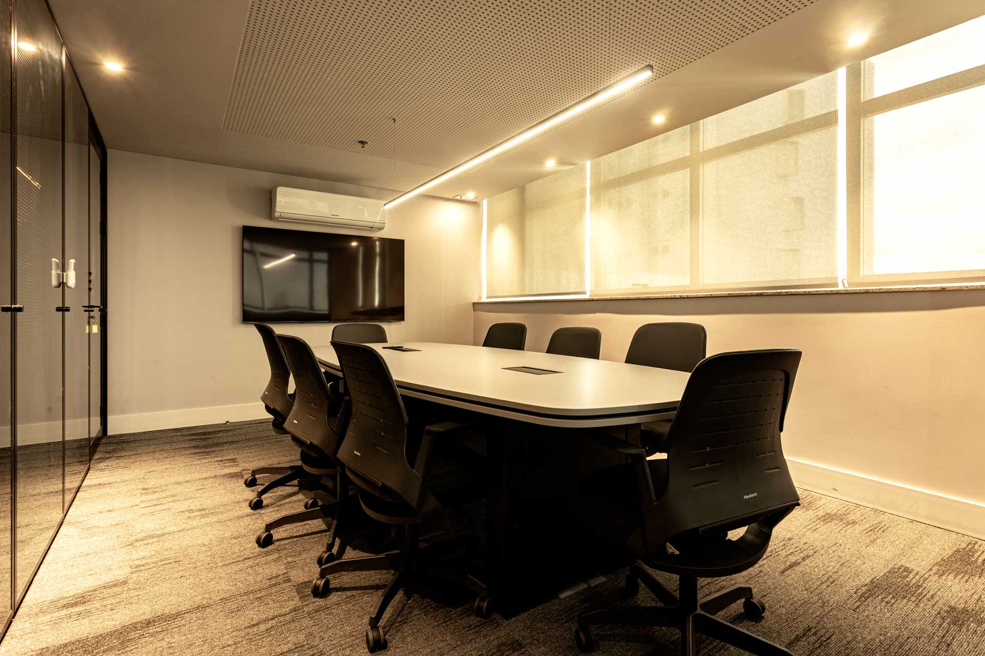 Salas de reunião, escritórios privativos e compartilhados e espaço multimídia